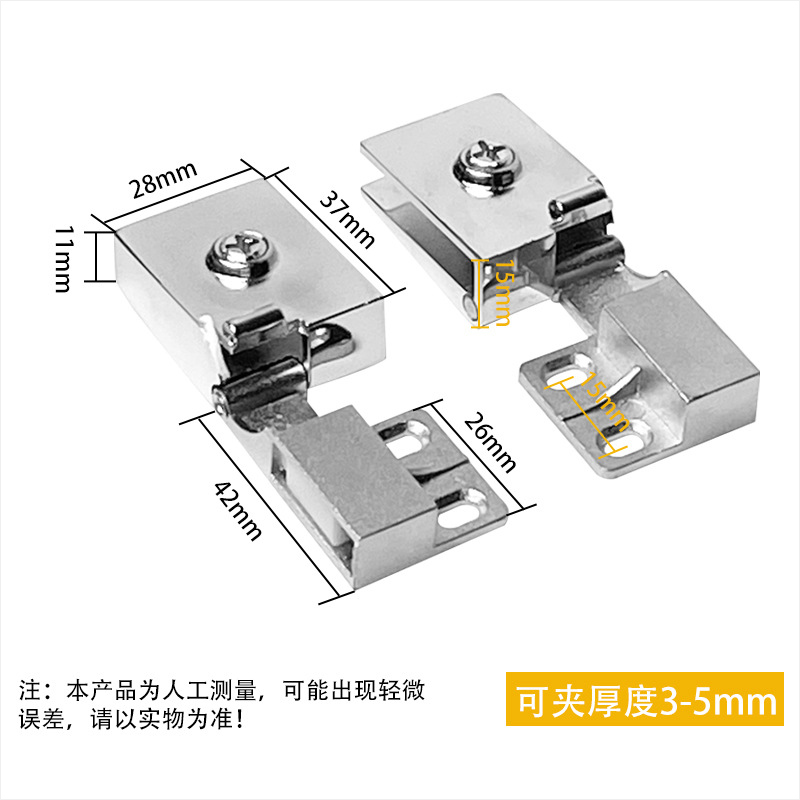 ◎ 产品名称:玻璃合页 ◎ 材质:锌合金 ◎ 配件:配送螺丝