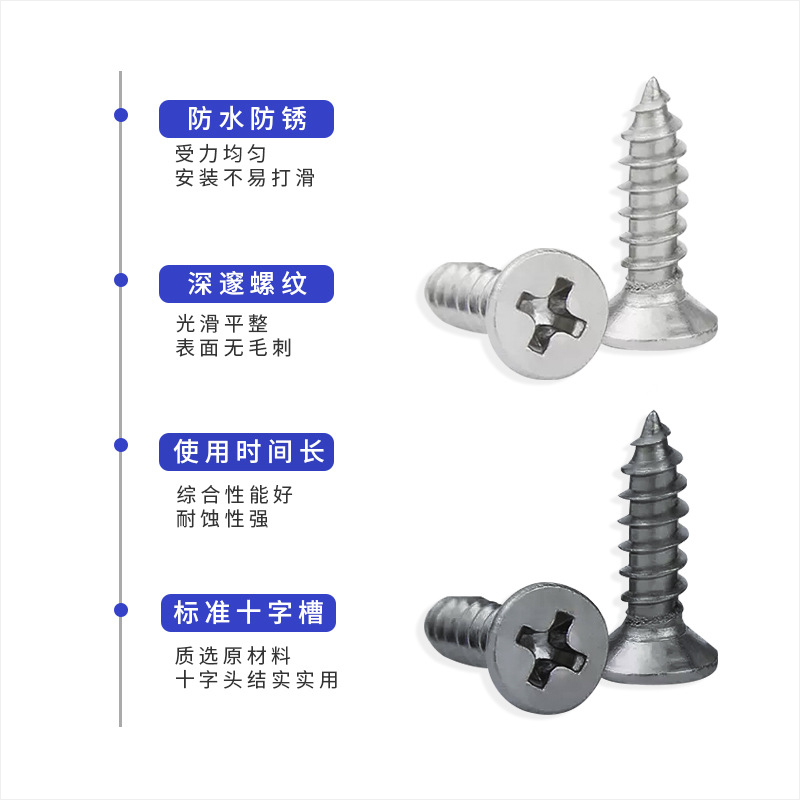 产品名称:十字沉头自攻钉    材质:201不锈钢 / 铁质